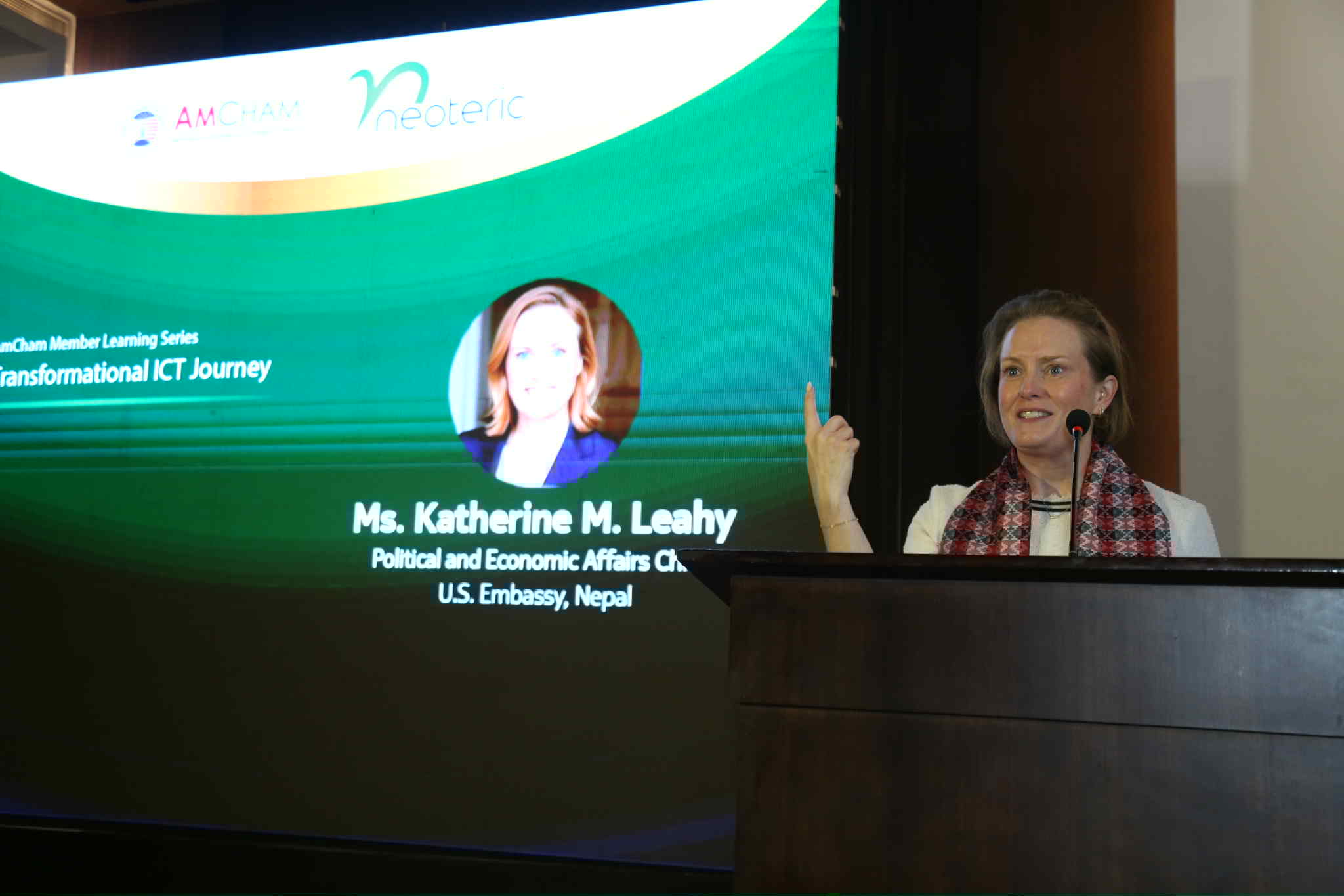 थापाले अमेरिकी राजदूतावासकी राजनीतिक तथा आर्थिक परामर्शदाता क्याथरिन एम लियीको संक्षिप्त परिचय गराउँदै नेपालको सूचना प्रविधिको क्षेत्रमा नेपाल र अमेरिकाबीचको सहकार्यको अपेक्षा व्यक्त गरे । हाल एमच्याममा विभिन्न १४ वटा क्षेत्रका ६१ वटा कम्पनी आबद्ध छन्।