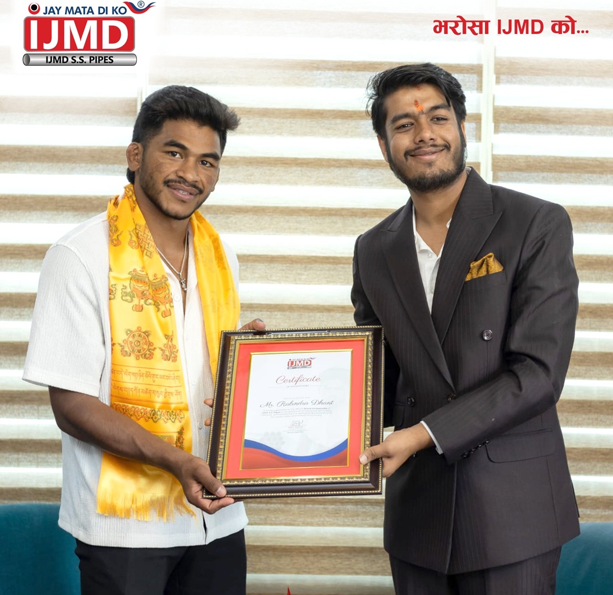 आइजेएमडी एसएस पाइप्सले ‘म्याट्रिक्स फाइट नाइट’का विजेता रविन्द्र ढाँटलाई ब्रान्ड एम्बास्डरमा नियुक्त गरेको छ।