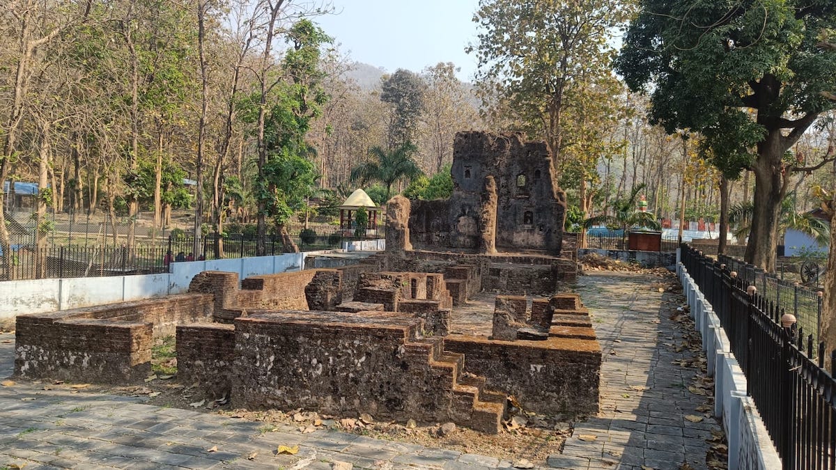 उद्यानको पश्चिमतर्फ कुनामा रहेको मणिमुकुन्द सेन दरबारको भग्नावशेष होचो पर्खालमाथि फलामको बार हालेर सुरक्षित राखिएको छ। सेन वंशका राजाहरूले रंगमहलका रूपमा प्रयोग गरेको यो दरबार इस्ट इन्डिया कम्पनीको अंग्रेज फौजसँगको युद्धमा नेपाली सैनिकहरूले प्रयोग गरेको र त्यतिबेला नै भत्किएको भन्ने इतिहास छ।