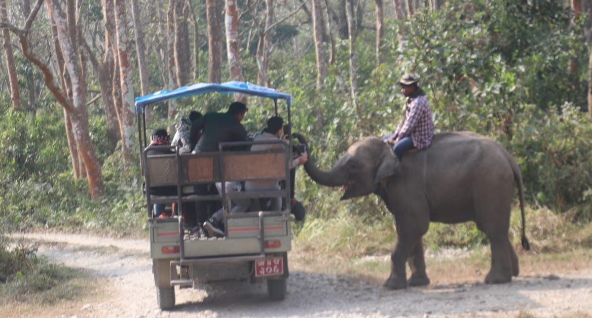 तर जंगल घुम्न आएका पर्यटकलाई आशीर्वाद दिएर भएको त्यति धेरै आम्दानी कहाँ जान्छ होला? मैले यो प्रश्न चितवन राष्ट्रिय निकुञ्जका संरक्षण अधिकृत गणेशप्रसाद तिवारीलाई सोधेको थिएँ। उनले जंगलमा पर्यटकलाई आशीर्वाद दिएर पैसा लिने निकुञ्जको कुनै कार्यक्रम नरहेको बताए। उनले आफूलाई जंगलभित्र हात्तीले पैसा संकलन गर्ने गरेको बारेमा जानकारी नभएको बताए।