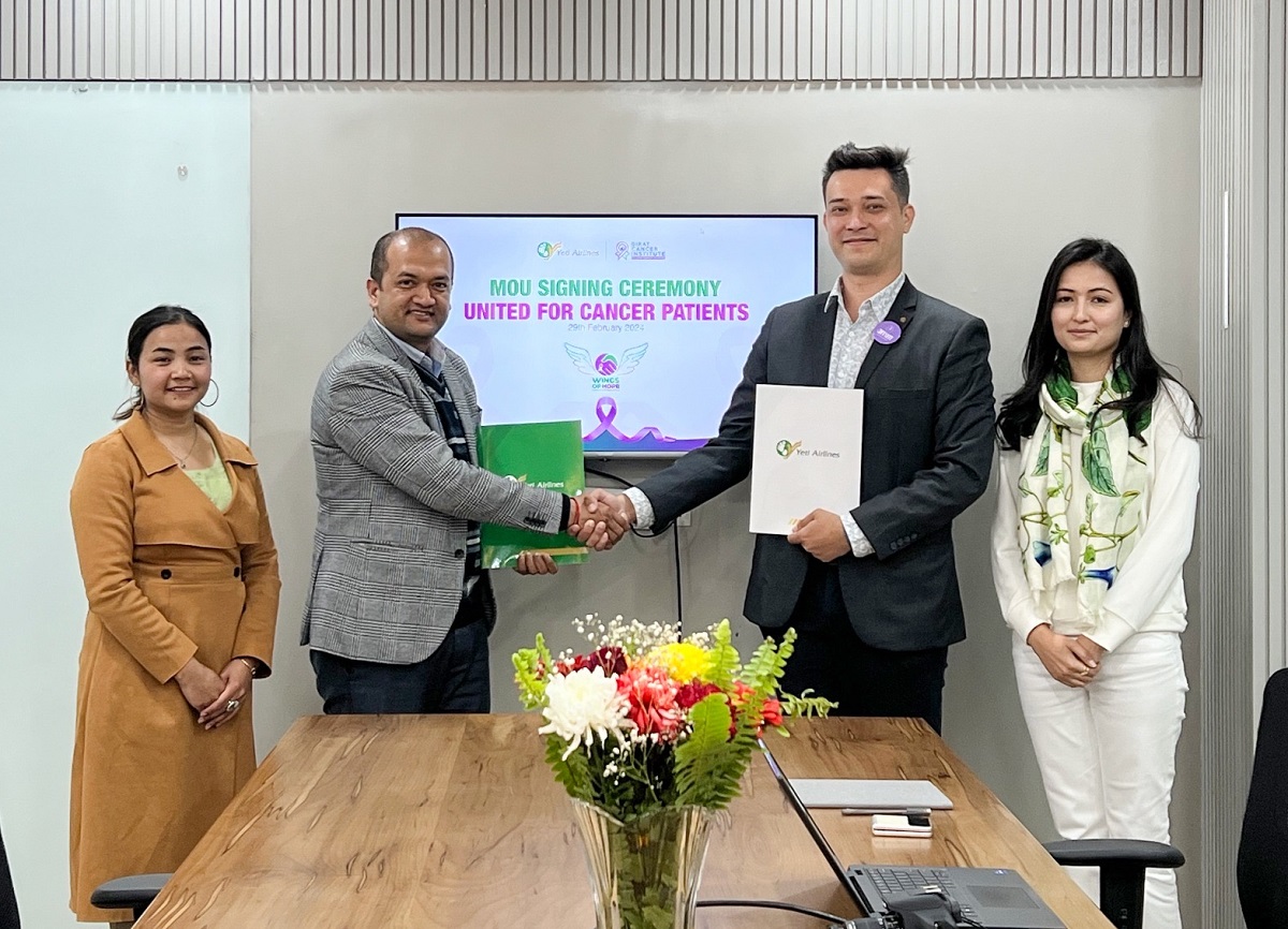 नेपालभरकै क्यान्सर बिरामीहरूलाई हवाई टिकट निःशुल्क उपलब्ध गराउने गरी यति एयरलाइन्स र बिराट क्यान्सर इन्स्टिच्युटबीच फागुन १७ गते सम्झौता–पत्रमा हस्ताक्षर भएको हो।