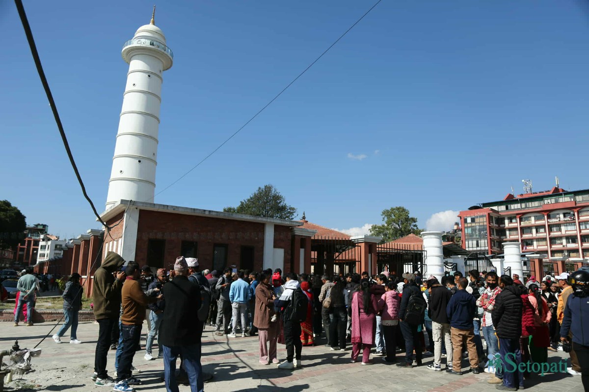 आइतबार मध्यान्ह साढे १२ बजेदेखि टिकट काउन्टर खुलेको छ। उक्त काउन्टरमा मानिसहरू लाइन लागेर बसेका छन्।