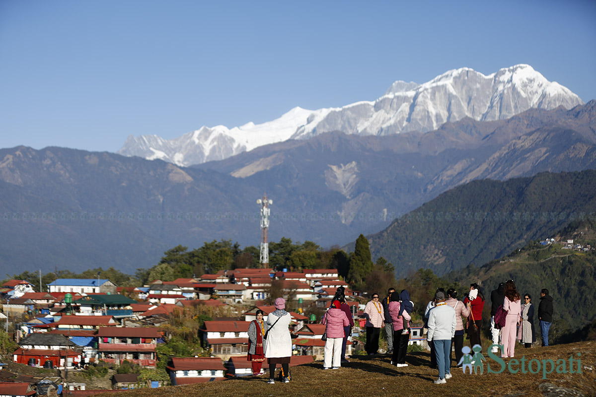 हिमालको काखमा अवस्थित यो गाउँबाट चारैतिर सुन्दर हिमालहरू देखिन्छन्।