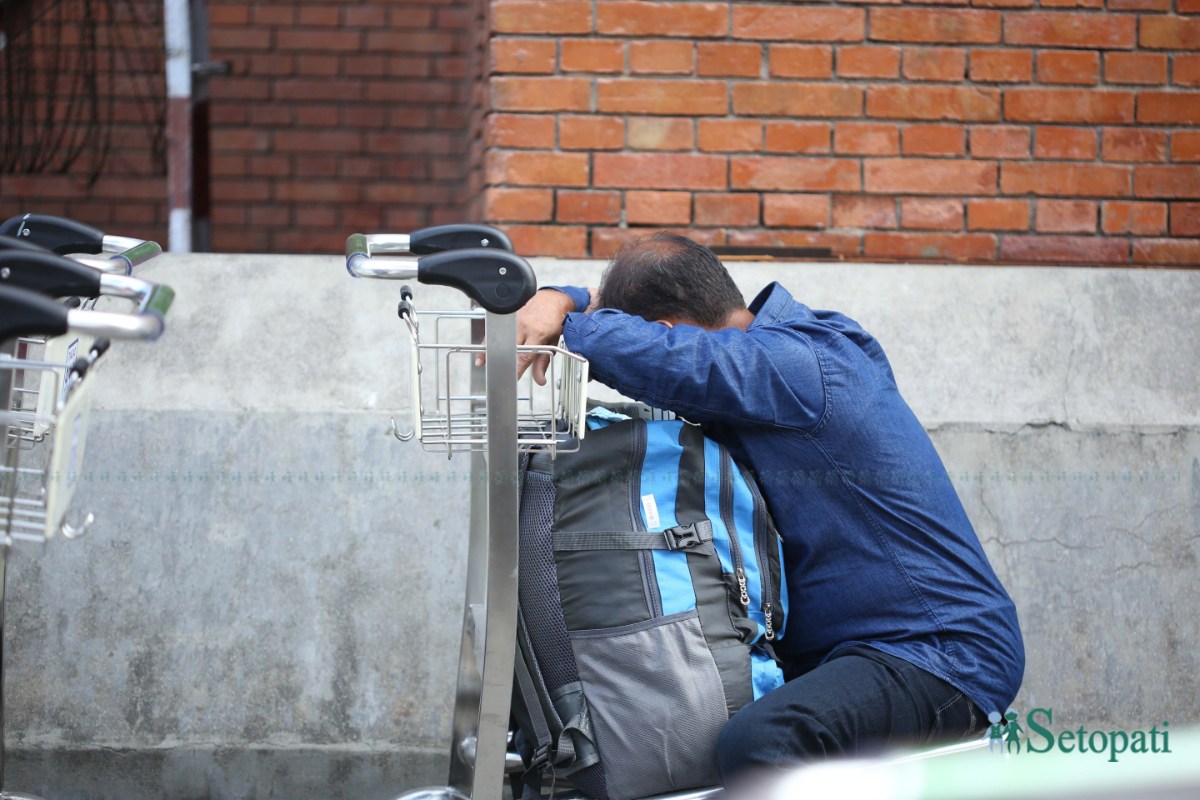 उडान रद्द भएपछि यात्रुहरू रातभरि विमानस्थलमै बसेका थिए।