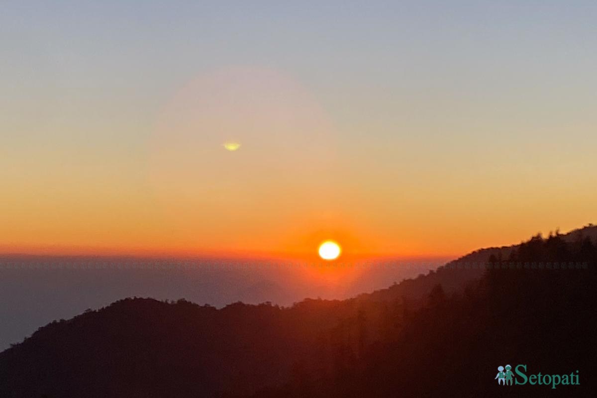 बेथानचोक गजराम पर्वत देखि जाडोयाममा सूर्योदयको मनमोहक दृश्य