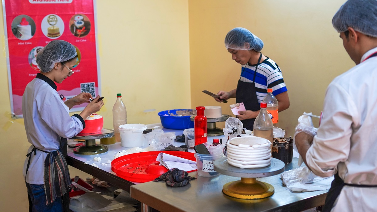 'देशमै केही गर्छु भनेर विदेशबाट फर्केका युवालाई प्रोत्साहन गर्न प्राथमिकता दिएका छौं,' दिव्येश भन्छन्, 'उनीहरूलाई केक बनाउने तालिम दिएर काममा राखेका हौं।'