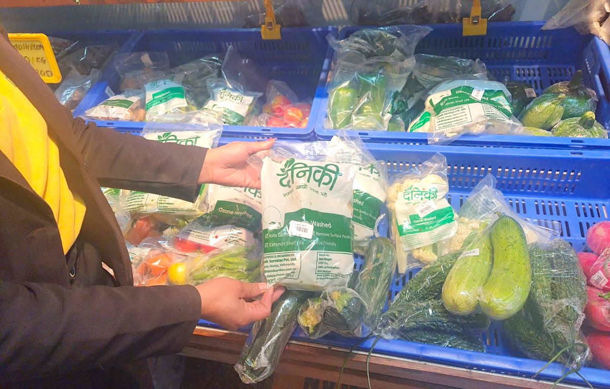 यसपछि ती तरकारी–फलफूल एक मेसिनमा राखेर 'ओजोन वास' गरिन्छ।