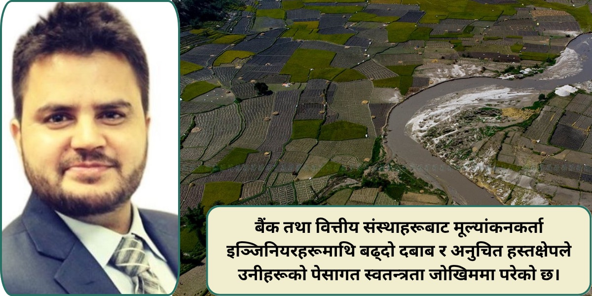 पछिल्लो समय भने बैंक तथा वित्तीय संस्थाहरूबाट मूल्यांकनकर्ता इञ्जिनियरहरूमाथि बढ्दो दबाब र अनुचित हस्तक्षेपले उनीहरूको पेसागत स्वतन्त्रता जोखिममा परेको छ। यस्तो दबाबले मूल्यांकन प्रक्रियाको पारदर्शिता र विश्वसनीयतालाई क्षति पुर्याइरहेको छ। अर्कातिर, सम्पूर्ण वित्तीय प्रणालीमा गम्भीर असर पार्ने खतरा देखिएको छ।
