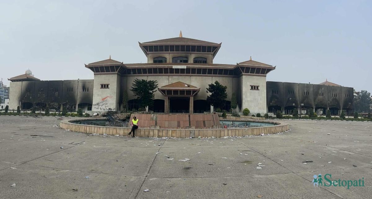 संसदको हामीले खोजेको प्रतिष्ठा कायम गर्न अब कसरी सकिएला, कस्तो प्रबन्धबाट मात्र नवयुवाहरूको रक्तपातबाट तंग्रेर भोलिको संसदले थिति बसाऊला, लोकतान्त्रिक स्थायित्व देला — यी सवालहरूसहित म त्यो साँझसँगै उराठ र उदेकलाग्दो गरी डढेको संसद भवनबाट ओझेल परेँ।