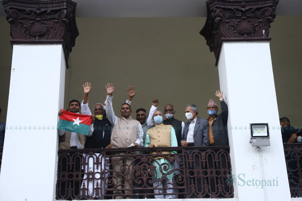 JSP was divided on whether to form a government excluding CPN-UML or not. JSP leaders Baburam Bhattarai and Upendra Yadav, coming from erstwhile Federal Socialist Forum Nepal, publicly demanded toppling of Oli government and wanted to form a majority government with Nepali Congress (NC) and CPN (Maoist Center) while leaders from the erstwhile Rashtriya Janata Party like Thakur and Rajendra Mahato were negotiating with Oli and prevented formation of majority government in alliance with NC and Maoist Center.