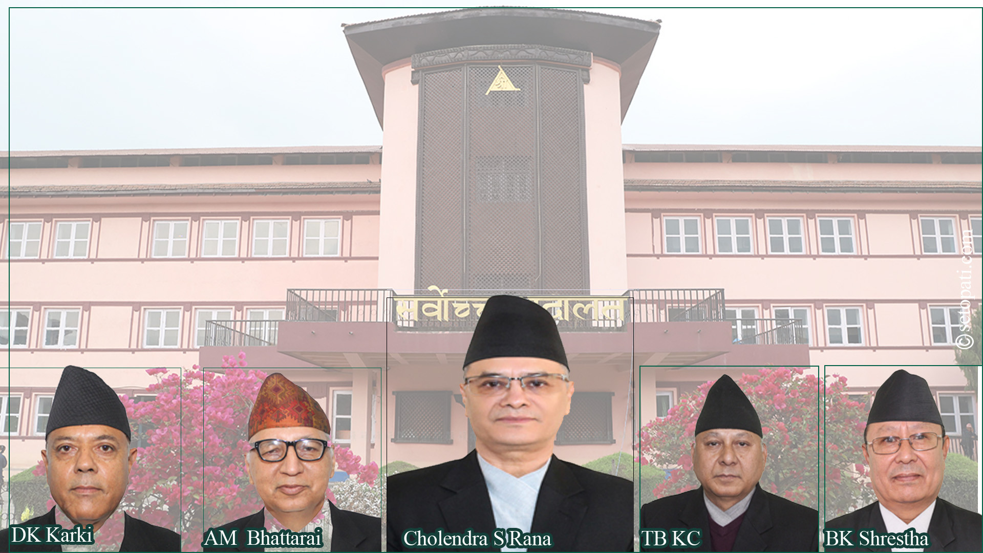 Chief Justice (CJ) Cholendra Shumsher Rana included Justices Deepak Kumar Karki, Ananda Mohan Bhattarai, Tej Bahadur KC and Bam Kumar Shrestha in the five-strong constitutional bench that he headed.