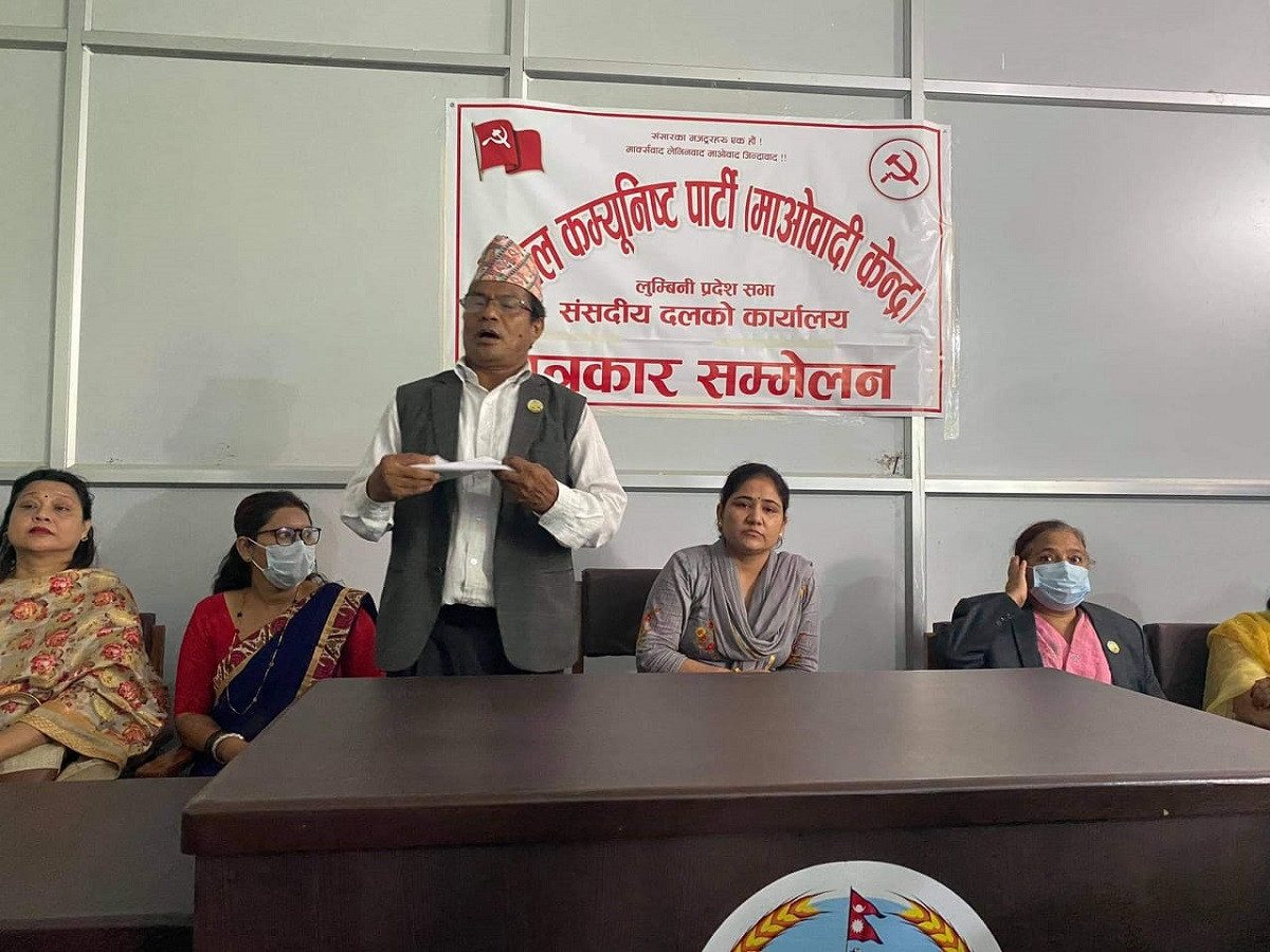 Provincial assembly member from Lumbini Bimala Kumari Khatri Oli has again pledged allegiance to CPN (Maoist Center) holding a press conference just four days after issuing a statement swearing allegiance to CPN-UML.