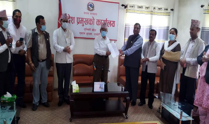The four-party alliance has submitted signatures of the majority of lawmakers in Lumbini to Governor Amik Sherchan to stake claim for the government.