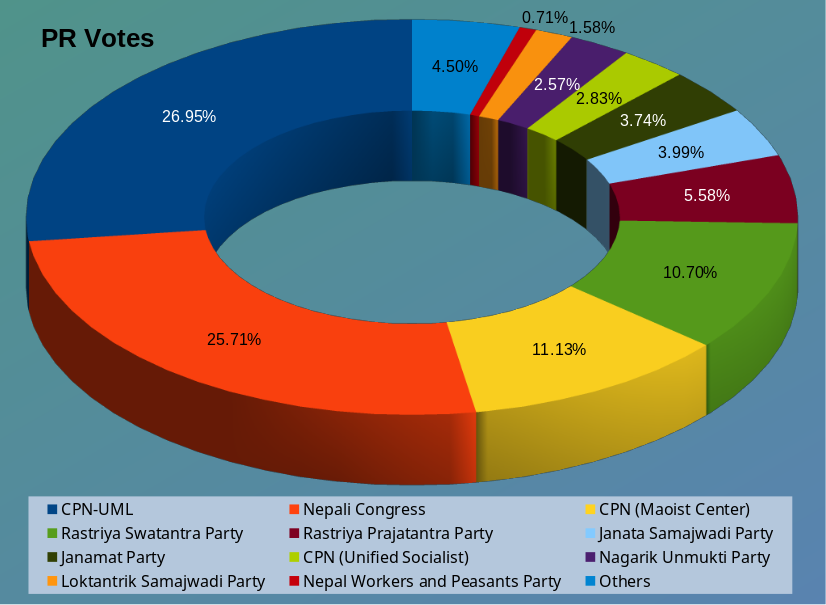 With more than 10.56 million votes counted in the proportional representation (PR) electoral system for the House of Representatives (HoR) until Tuesday afternoon, CPN-UML has maintained its lead with nearly 27% of the total votes.