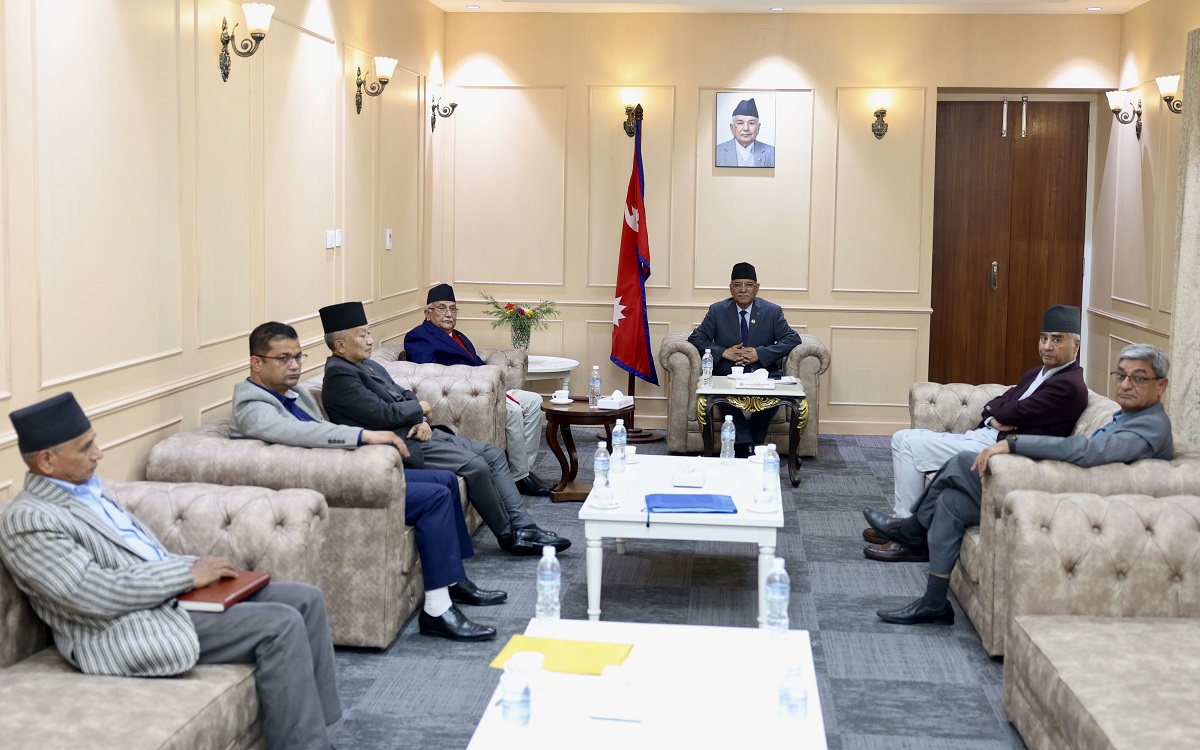 Prime Minister Pushpa Kamal Dahal, Nepali Congress President Sher Bahadur Deuba, CPN-UML Chairman KP Sharma Oli and other leaders took part in the meeting.