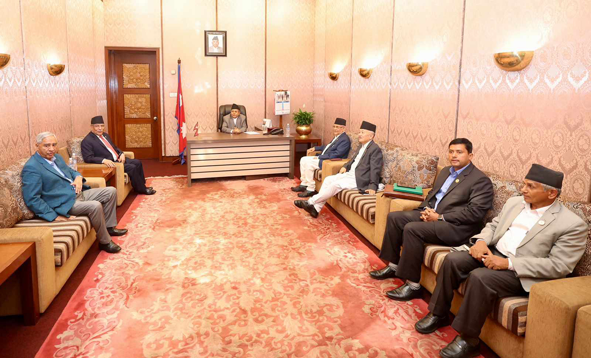 Prime Minister Pushpa Kamal Dahal, Nepali Congress President Sher Bahadur Deuba, CPN-UML Chairman KP Sharma Oli met twice at Speaker Ghimire’s initiative on Monday but the ruling and opposition parties could not reach an agreement on formation of a high-level committee for investigation of the recent gold smuggling case. Deputy leaders, chief whips and whips of the parties also attended the discussion.