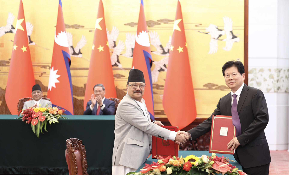 The agreements were signed after the delegation level meeting of PM Dahal and his Chinese counterpart Li Qiang in Beijing on Monday.