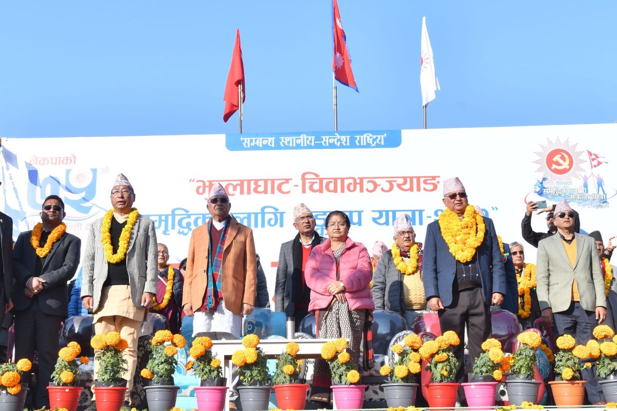 UML Chairman KP Sharma Oli brought the campaign to an end unfurling the national flag on Sunday. The campaign spanned more than 2,000 kilometers.