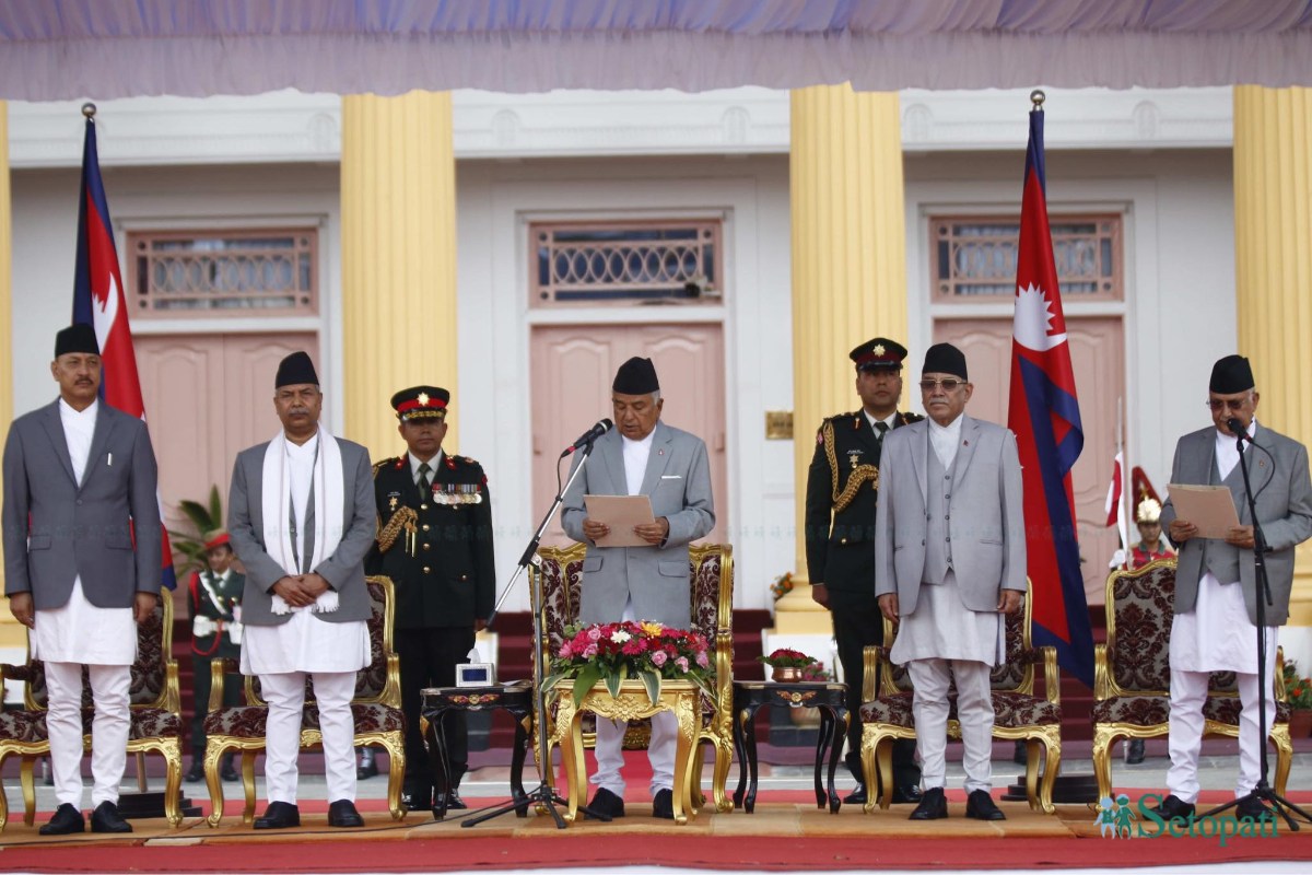President Ram Chandra Paudel administered oath of office and secrecy to Oli amidst a program held at the Shital Niwas on Monday.