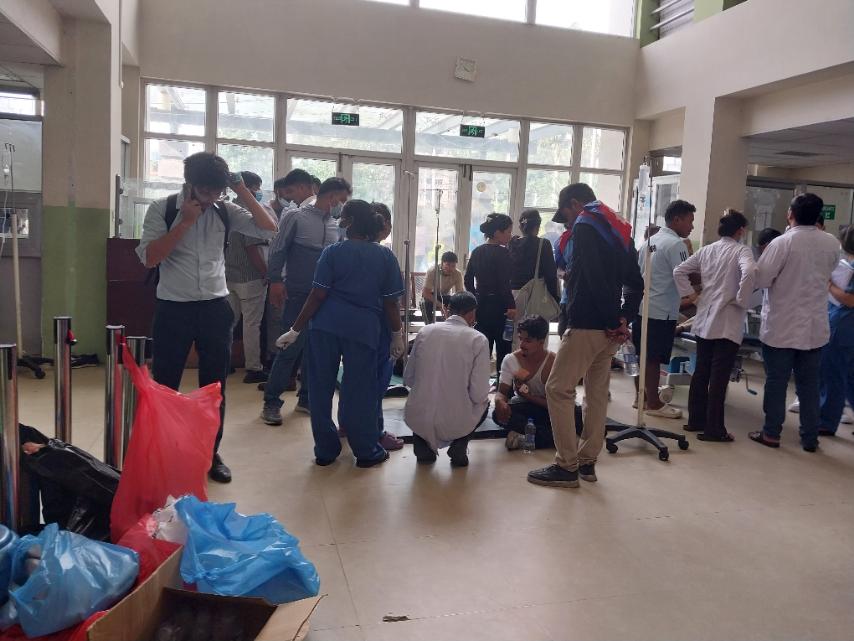 According to head of the emergency department at Civil Hospital in New Baneshwor Ramesh Panta, three persons who were brought in for treatment after being injured in the afternoon have died. All three of the deceased are men.