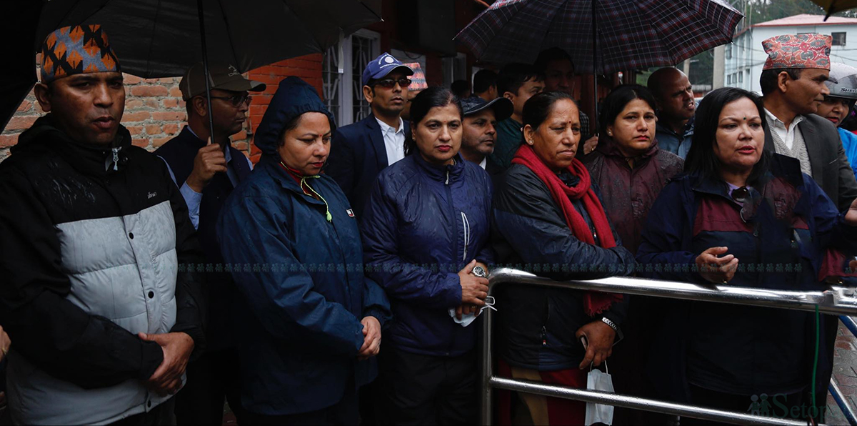 निजामती कर्मचारीहरूले सिंहदरबारअगाडि धर्ना दिएका छन्।