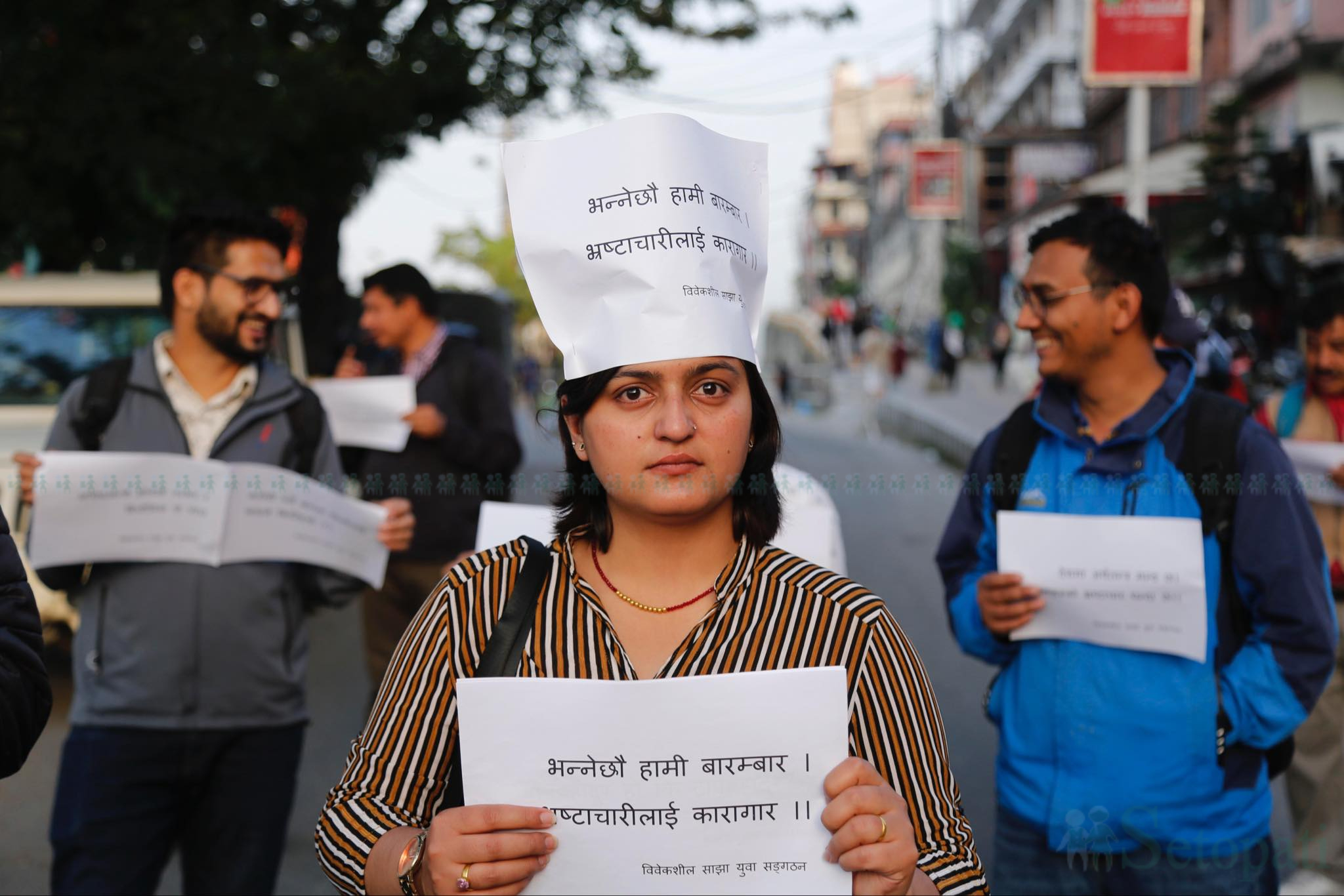 विवेकशील साझा पार्टीको युवा संगठनले नक्कली भुटानी शरणार्थी प्रकरणको विरूद्ध प्रदर्शन गरेको छ।