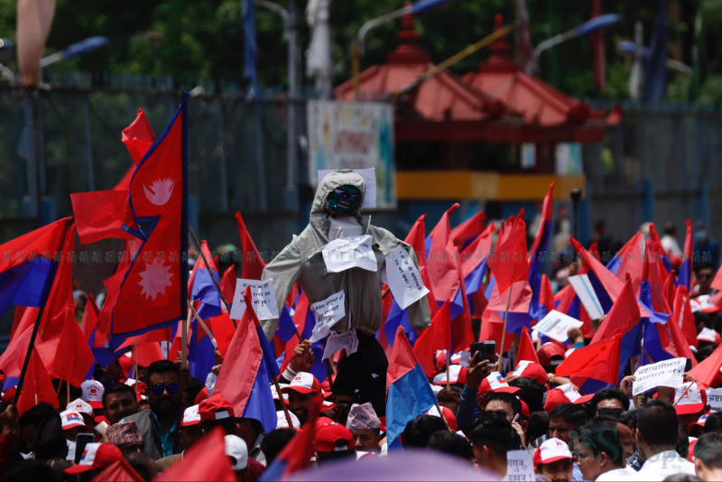 नेकपा एमालेको जनवर्गीय संगठनहरूले भ्रष्टाचारविरूद्ध प्रदर्शन गरेका छन्।