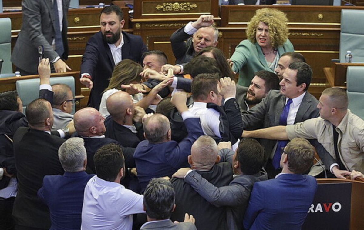 समाचार संस्था रोयटर्सका अनुसार पोडियममा बोलिरहेका प्रधानमन्त्री आल्बन कुर्तीलाई एक जना विपक्षी सांसदले पानी छ्यापेपछि कुटाकुट सुरू भएको हो।