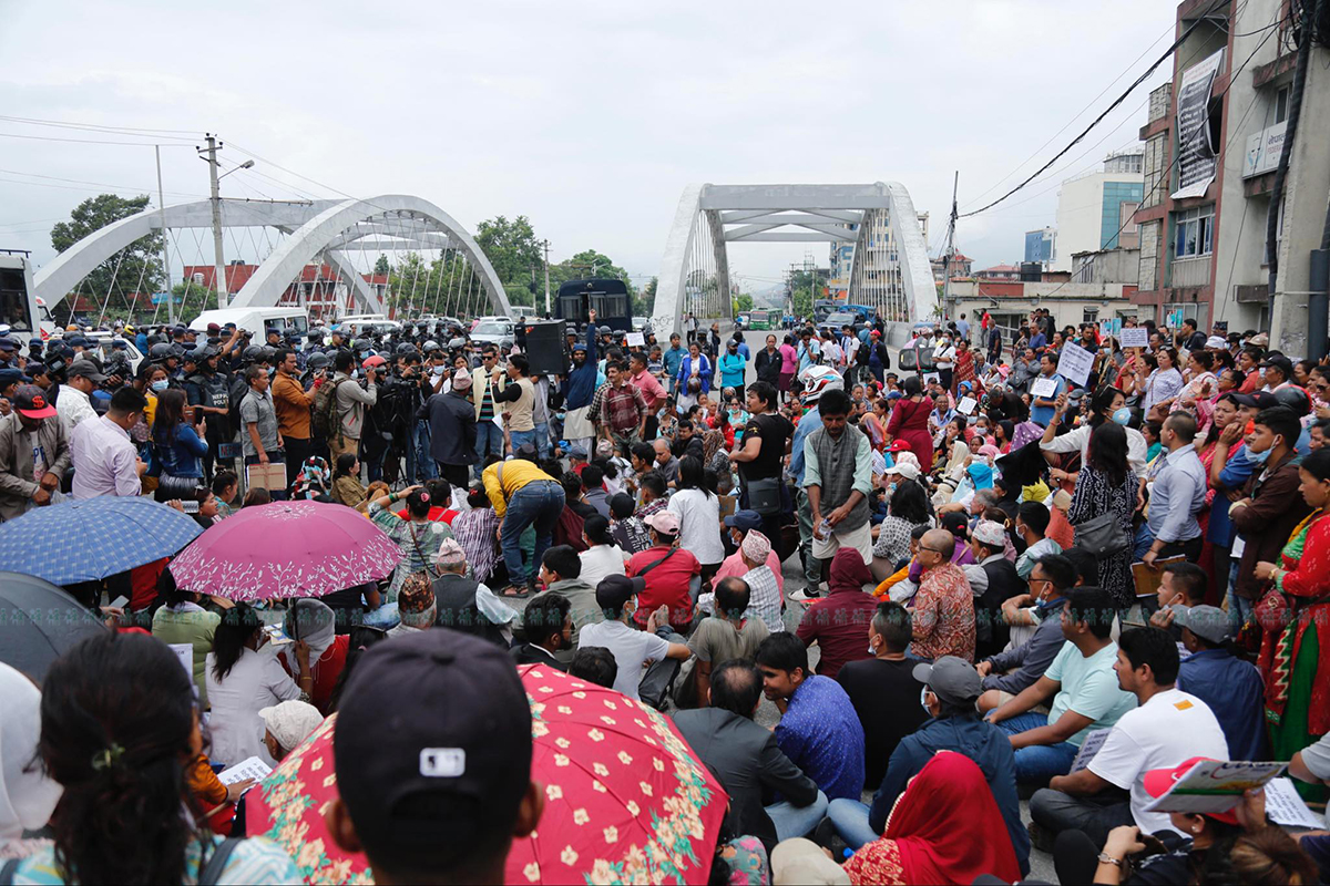 'इच्छाराजको पाराले दु:ख पायो साराले', 'हाम्रो रगत पसिना चुस्ने ठगहरू होसियार', 'ए सरकार कि त मारिदेऊ कि त खोला तारिदेऊ' लगायतका नारा लगाएर उनीहरूले प्रदर्शन गरेका छन्।