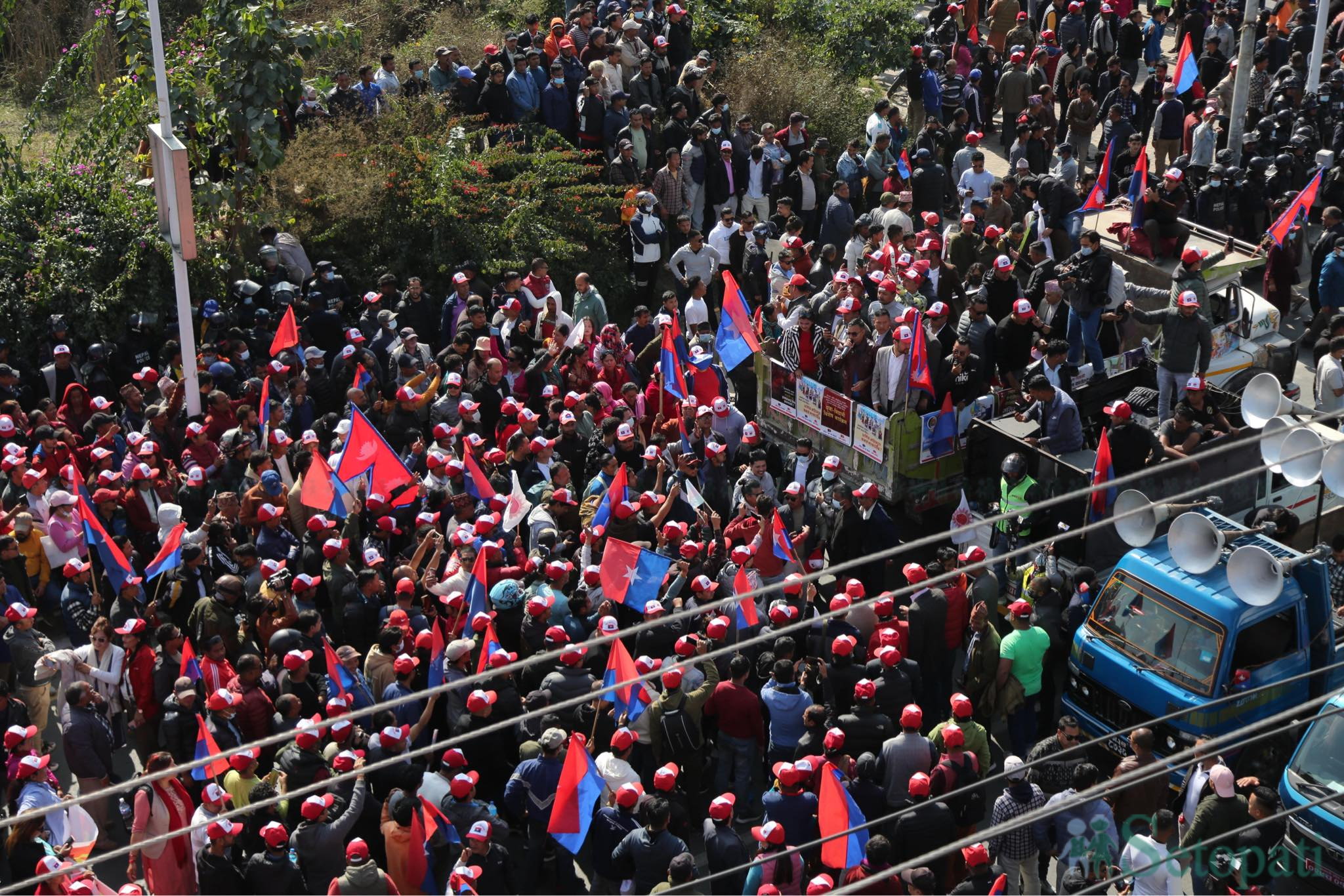 काठमाडौंको तीनकुने क्षेत्रमा नेकपा (एमाले) को भ्रातृ संगठन राष्ट्रिय युवा संघ र अनेरास्ववियुले प्रदर्शन गरेका छन्।