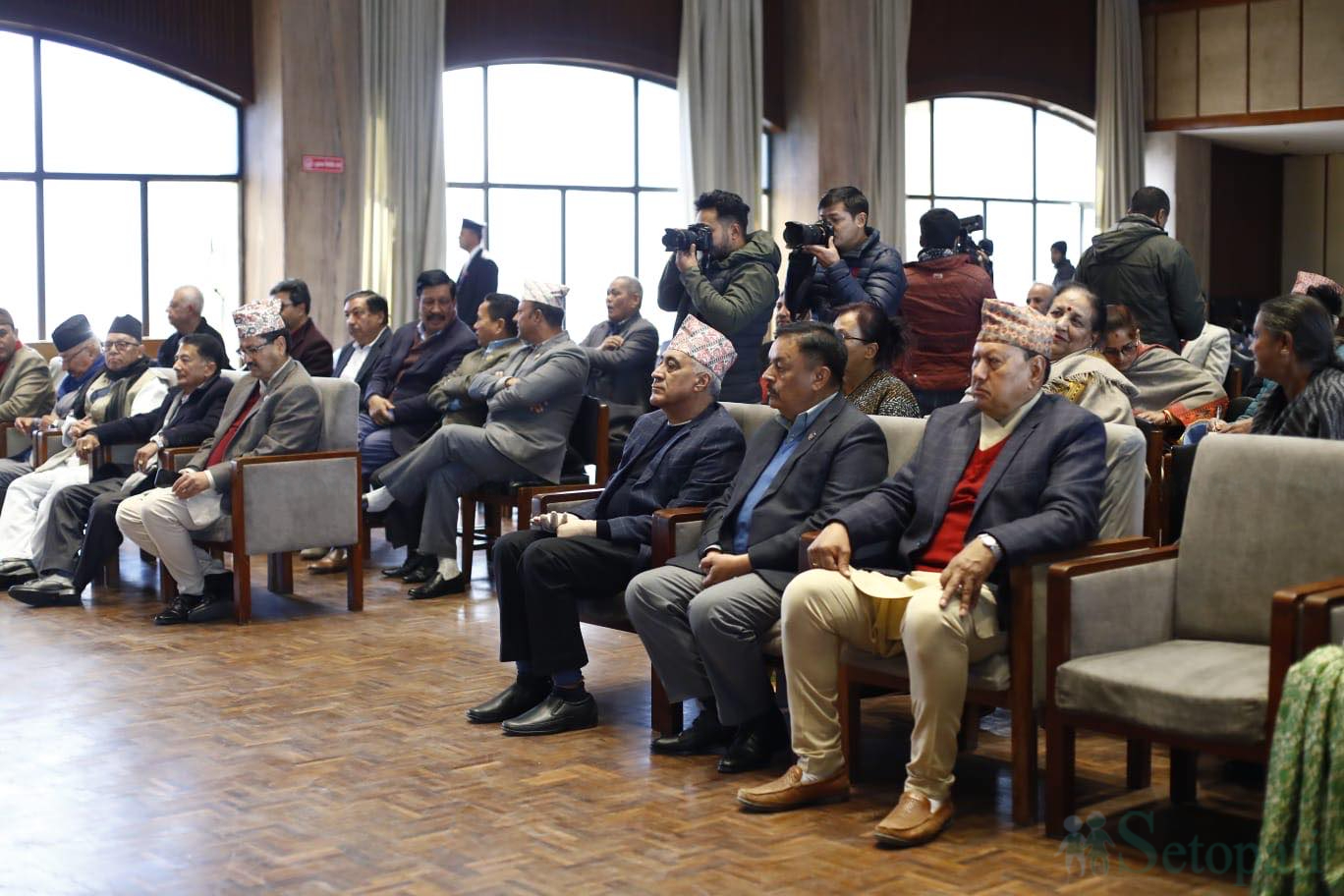 सभापति शेरबहादुर देउवाले माघ २२ गतेदेखि संघीय संसदको दुवै सदन (प्रतिनिधि सभा र राष्ट्रिय सभा) को बैठक सुरू हुने भएकोले विभिन्न विधेयकहरूबारे छलफल गर्न दल बैठक राखेका छन्।