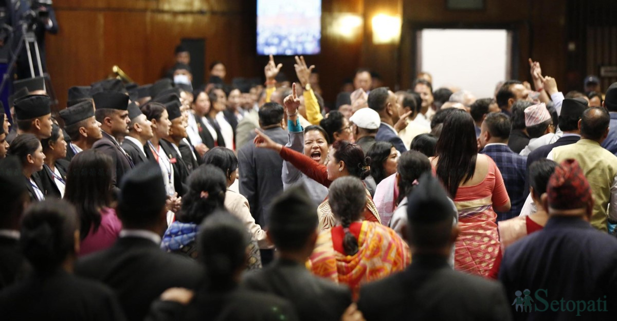 साथै सभामुख घिमिरेले शुक्रबार बिहान ११ बजेसम्मका लागि बैठक स्थगित गरेका छन्। बैठक स्थगित भइसकेपछि पनि सत्तापक्ष र प्रमुख प्रतिपक्षी कांग्रेसका सांसदहरूबीच धकेलाधकेल र विवाद भएको थियो।
