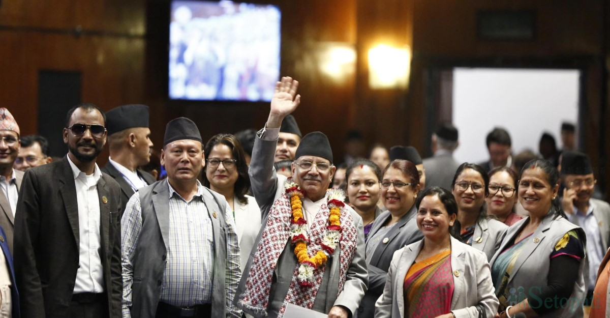 नेपाली कांग्रेससहित विपक्षी दलहरूको नाराबाजीबीच प्रधानमन्त्री पुष्पकमल दाहाल 'प्रचण्ड' ले विश्वासको मत लिएका छन्।
