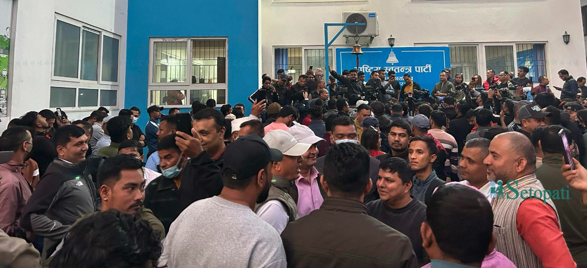 राष्ट्रिय स्वतन्त्र पार्टी (रास्वपा) सभापति रवि लामिछानेविरूद्ध पक्राउ पुर्जी जारी भएपछि केन्द्रीय कार्यालयमा भिड लागेको छ।