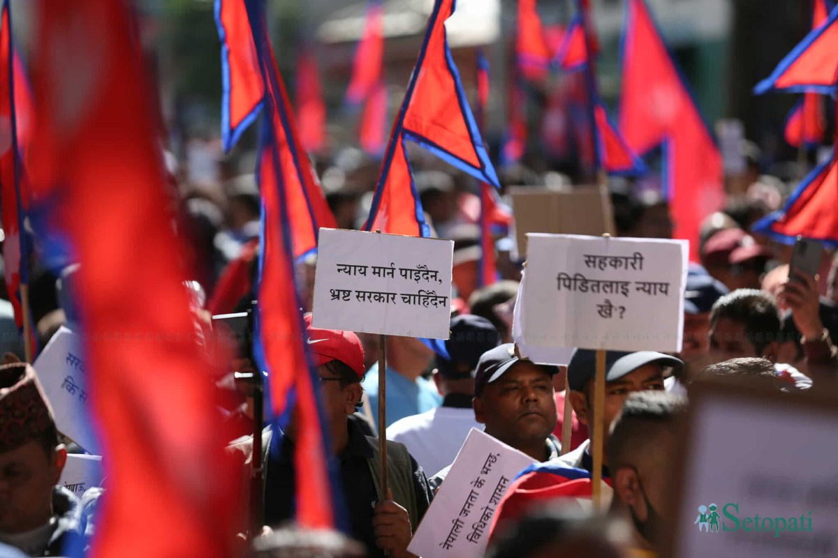 सभापति रवि लामिछानेलाई सहकारी अपचलन, संगठित अपराध कसुरमा पक्राउ गरेको विरोधमा रास्वपाले प्रदर्शन गरेको हो। मंगलबार दिउँसो बालुवाटारको निषेधित क्षेत्रमा प्रदर्शन गर्नेहरूलाई प्रहरीले नियन्त्रणमा लिएको छ।