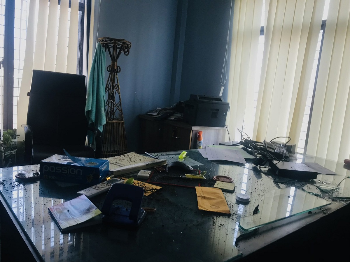कार्यालयको बोर्डमा सोमबार प्रधानमन्त्रीविरूद्ध गालीगलौज गरेको सूचना देखा परेको थियो। त्यही विषयलाई लिएर मंगलबार कार्यालय प्रमुख श्रेष्ठमाथि एक समूहले हातपात गरेको हो। कार्यालय प्रमुख श्रेष्ठमाथि कुटपिट गर्ने र कार्यालय तोडफोड गर्नेहरूको पहिचान नखुलेको प्रहरीले जनाएको छ।