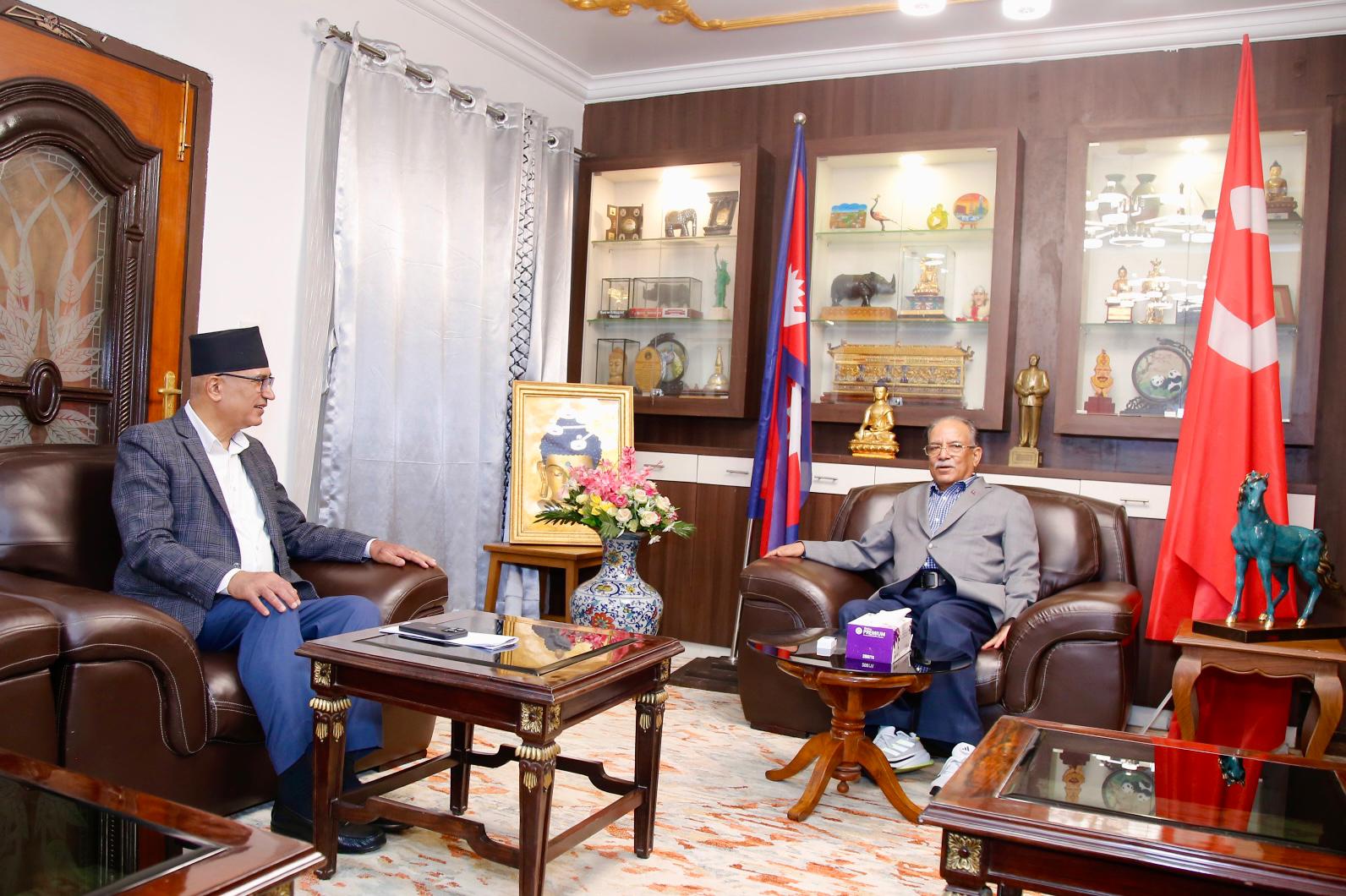 प्रमुख प्रतिपक्षी दलका नेतासमेत रहेका माओवादी केन्द्रका अध्यक्ष पुष्पकमल दाहाल ‘प्रचण्ड’ र अर्थमन्त्री विष्णु पौडेलबीच छलफल भएको छ।