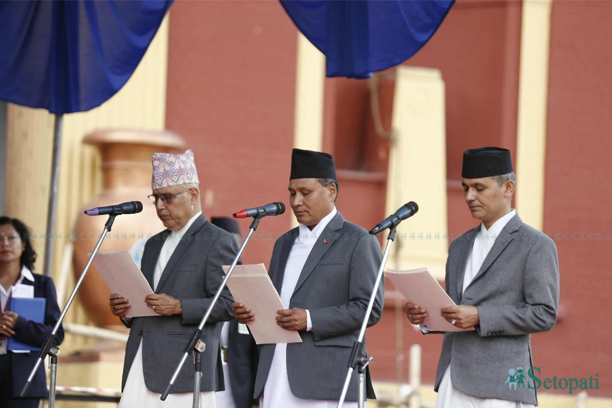 नवनियुक्त तीन मन्त्रीले पद तथा गोपनीयताको शपथ लिएका छन्।