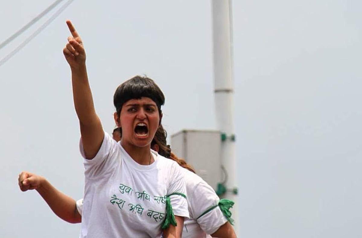 मुस्कानको 'इमोजी' अंकित ब्याज छातीमा टाँसेर, हातमा प्लाकार्ड बोक्दै कुशासन, भ्रष्टाचार र असमानताविरूद्ध भोकभोकै प्रदर्शन गर्दाका क्षण सम्झिइन्।