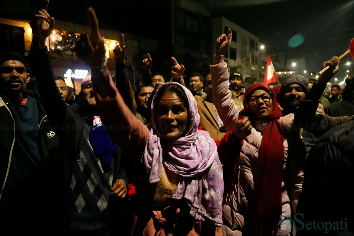 मूल गेट बाहिर शेरबहादुर देउवा पक्षका कार्यकर्ताहरूले प्रदर्शन गरेका छन्।