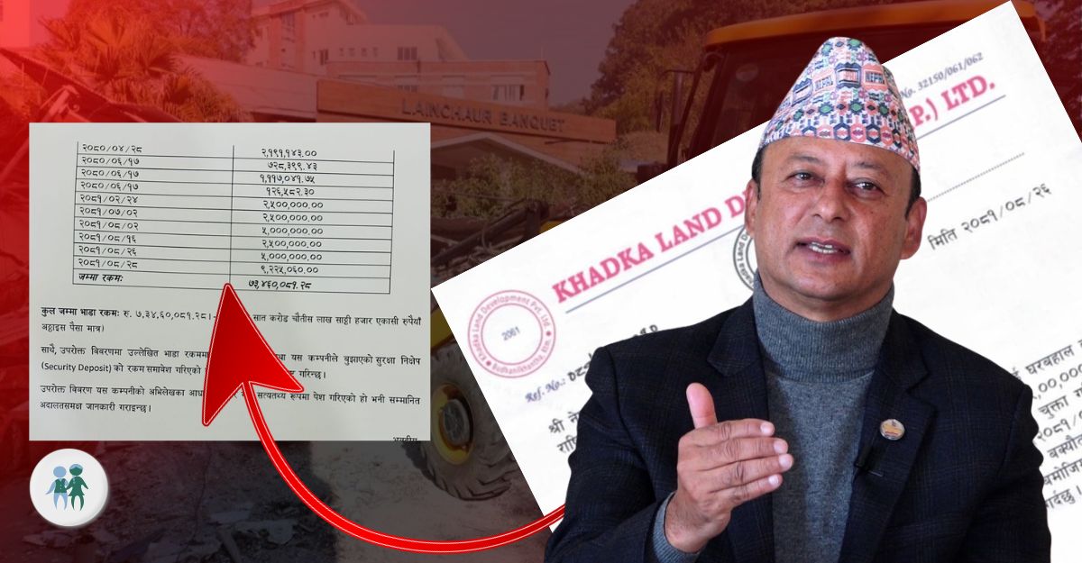 गत कात्तिक २७ गते खड्का ल्यान्डले बनाउको पार्टी प्यालेसमा काठमाडौं महानगरपालिकाले डोजर लगाएको थियो।