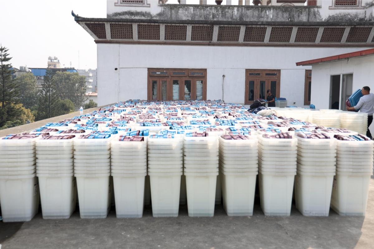 आयोगका कर्मचारीहरूले मतपेटिकाहरूलाई जिल्ला जिल्लामा पठाउनका लागि तयारी अवस्थामा राखेका छन्।