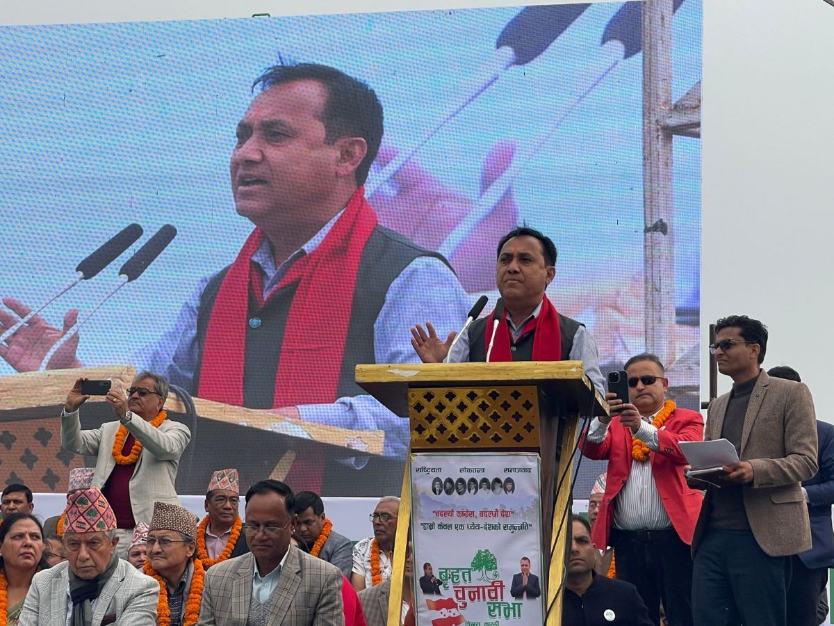 ‘हामी देशलाई बदल्न चाहन्छौँ। त्यसकारण सबभन्दा पहिले राजनीतिलाई बदलौँ। नेपाली कांग्रेस पार्टीले संकल्प गरेको छ-हामी राजनीतिलाई बदल्न चाहन्छौँ। राजनीतिको शैली बदल्न चाहन्छौँ। संस्कारलाई बदल्न चाहन्छौँ। राजनीतिको यो चुनावको मैदानमा हाम्रो लागि कोही पनि दुश्मन छैनन्। आज हामी जो प्रतिस्पर्धा छौँ। यी दलहरू भोलि सत्ता र प्रतिपक्षमा सँगसँगै रहेर काम गर्नुछ। त्यसकारण दलहरूको मञ्चबाट त्यसैले दलहरुको मञ्चबाट गाली होइन, प्रेमलाई संप्रेषण गरौँ। निर्वाचनको मैदान दुश्मनीको अखडा होइन। निर्वाचनको मैदान व्यक्तित्व र प्रतिष्पर्धाको महायज्ञ हो,’ उनले भने।