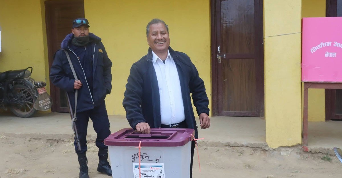 नेपाल कम्युनिष्ट पार्टी (माओवादी) का महासचिव नेत्रविक्रम चन्द (विप्लव) ले मनदान गरेका छन्।