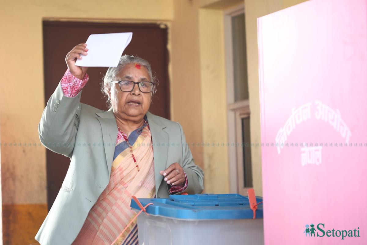 प्रधानमन्त्री सुशीला कार्कीले मतदान गरेकी छन्।