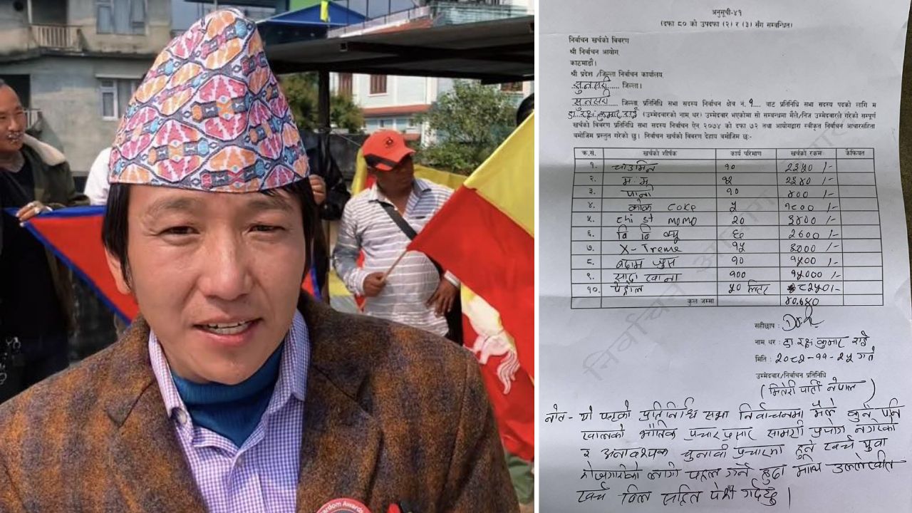 राईले बुधबार आफ्नो चुनावी अभियानमा ४० हजार ७४० रूपैयाँ खाजा खर्च भएको सार्वजनिक गरेका हुन्। उनले १० प्लेट चाउमिनको २३५०, १२ प्लेट झोल मःमको २३५०, पानी लगायत गरी ४० हजार ७४० रूपैयाँ चुनावमा खर्च भएको बताएका छन्।