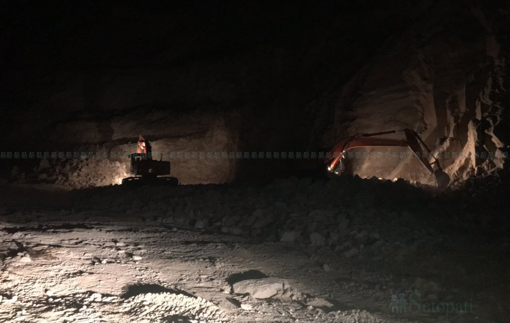 Work is being done even during the night to complete opening of track by June, according to Chief of Mahadev Base Camp Major Purna Chandra Dhakal. "Operators are working in two shifts. Other works are being done only during the day," Dhakal said.