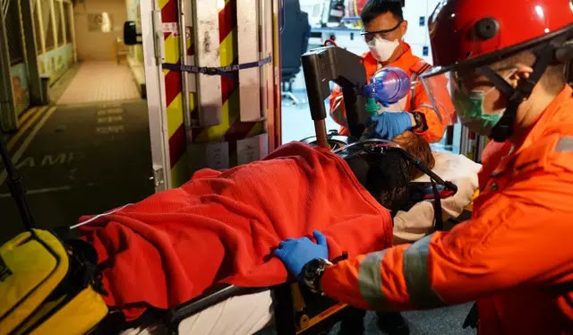 Video from local broadcaster TVB showed people on stretchers and in ambulances.