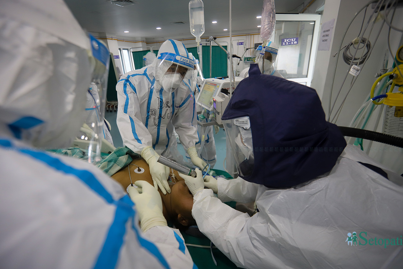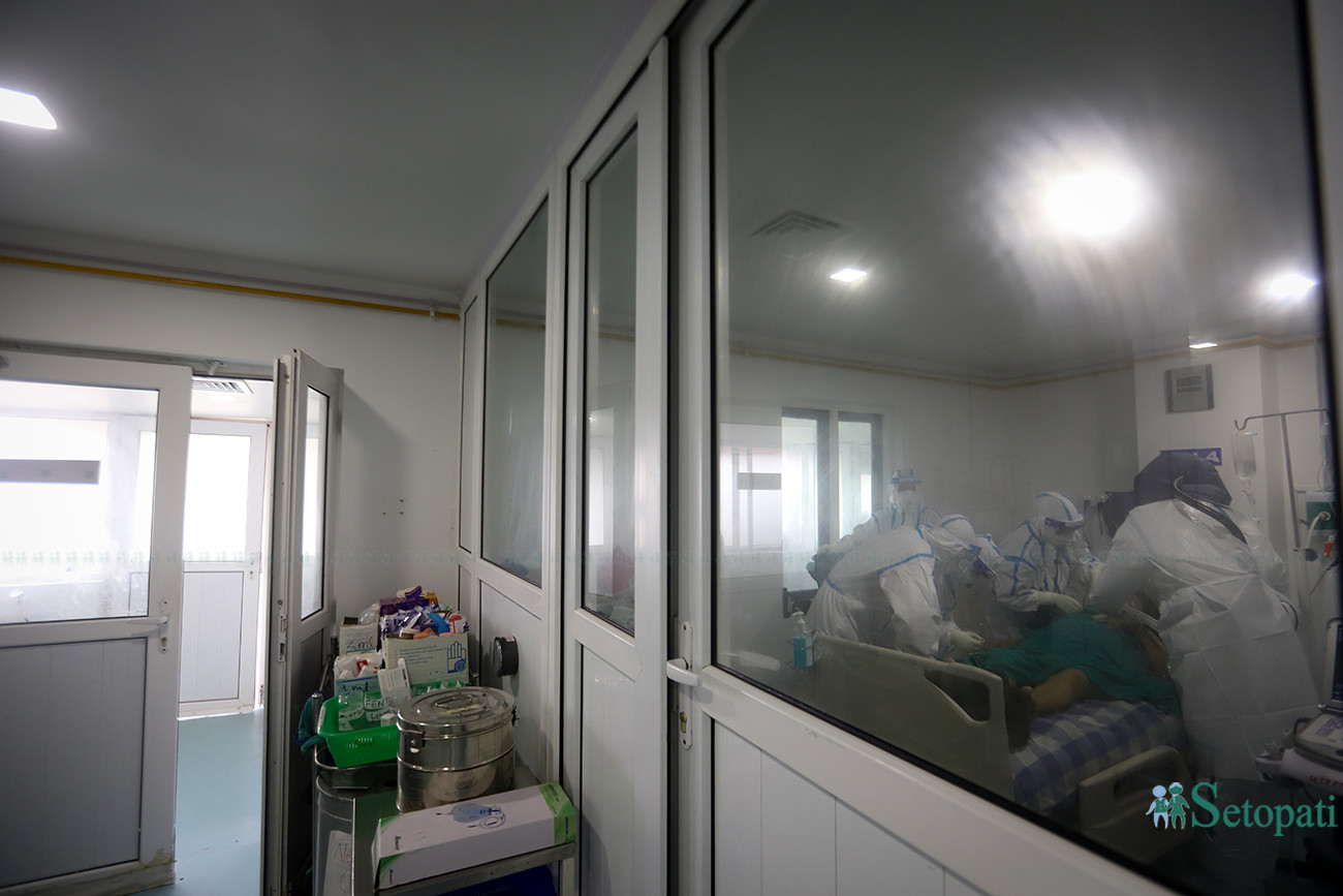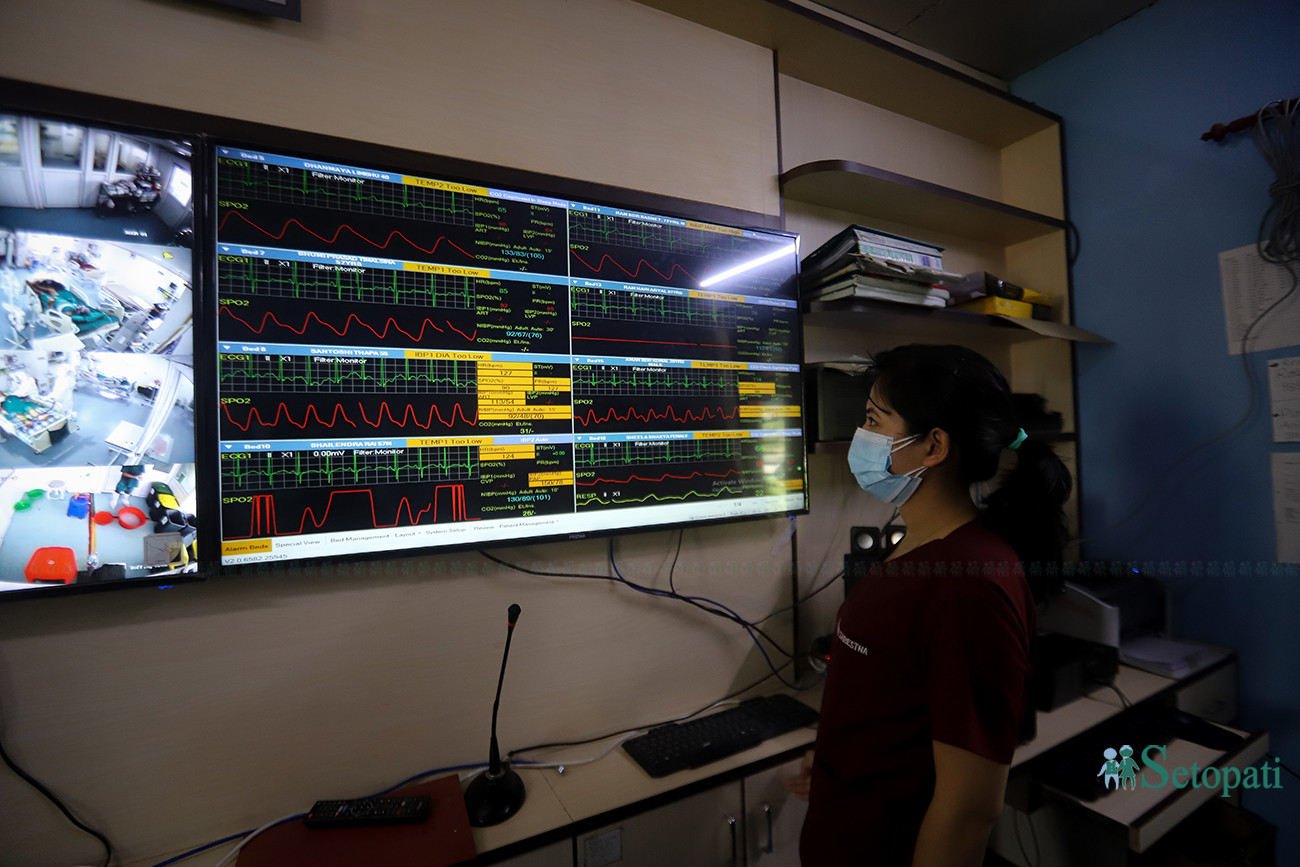 The next day, Dr Shrestha was checking the reports of all the patients in the ICU. Most of the patients' health seemed to have improved. But the woman's was worsening. She was not responding to the requests of medics at the ICU. She was crying. Dr Shrestha was watching all that from the monitoring cameras.