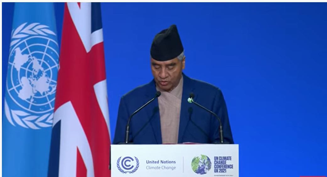 Making a statement as Leader of Nepali Delegation at the World Leaders Summit during the 26th Conference of Parties (COP 26) of the UN Framework Convention on Climate Change (UNFCCC) in Glasgow today, he said with temperatures rising higher than global average, glaciers are receding, snowfall is decreasing and permafrost is melting in the Himalayan region. Extreme climate events are increasing, causing huge economic and ecological losses and precious human lives. "Around 80% of Nepal’s population is at risk from natural and climate-induced hazards. During the last 40 years, natural disasters have caused close to 6 billion USD physical and economic damages in my country alone," the Prime Minister said.